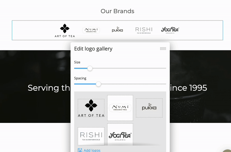 With the the new content element "logo gallery", you can easily display brands you are selling on your site. Take control of the sizing and margins directly in the editor - no need for Photoshop or extra tools. This is ideal for displaying partner logos or other small visuals in a clean, consistent way.